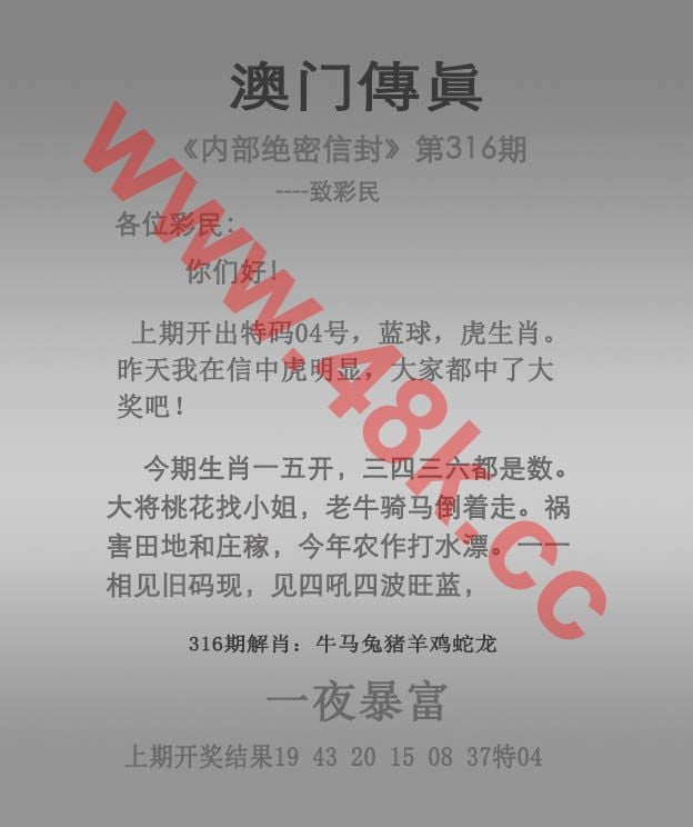 | 316期: ⑨肖 | 兔猴羊虎鼠猪鸡牛马 | ????中 |